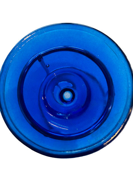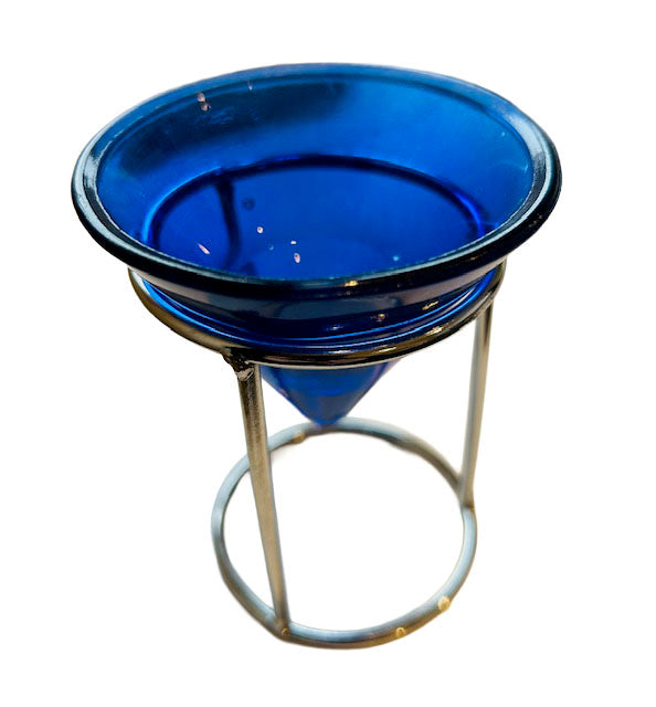 Schöne Teelichthalter aus blauem Glas, mit Edelstahl Halter.